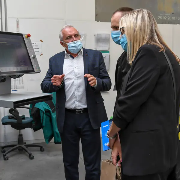 Zástupcovia mesta si prezreli priestory novej technicko-administratívnej budovy, výrobné priestory pre výrobu a montáž kompresorov a priestory pre spracovanie tenkých plechov a k tomu používaných technológií.